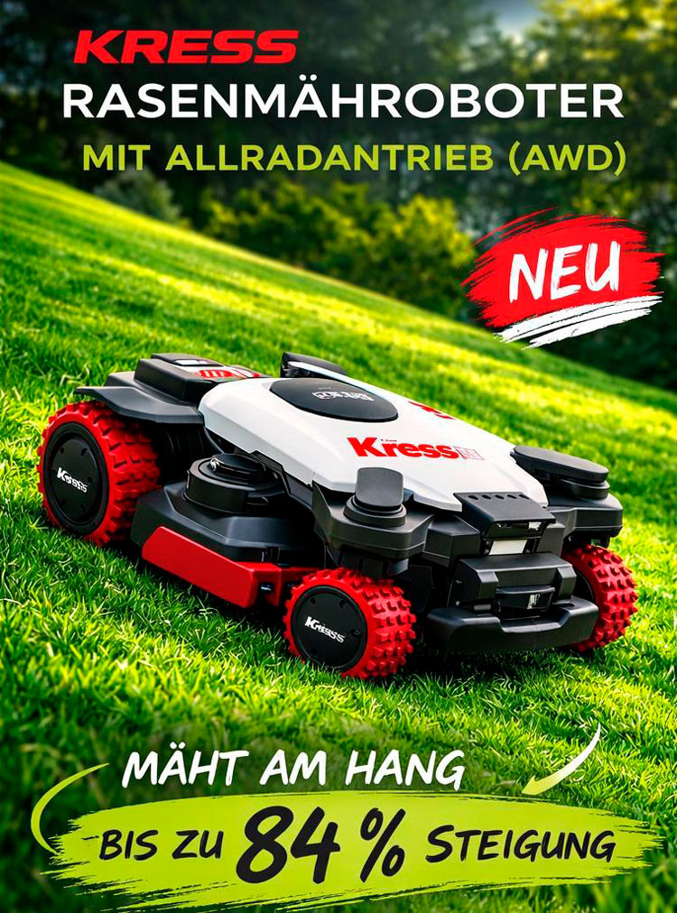 Mit den Mährobotern von Kress lassen sich Rasenflächen effizient und gleichmäßig pflegen – auch in anspruchsvollem Gelände. Wir übernehmen nicht nur den Verkauf, sondern das komplette Setup vor Ort: Beratung, Auswahl des passenden Modells, Einmessen der Fläche, Installation und laufender Service. Ob Einfamilienhaus oder Bauhof – die Systeme entlasten Personal und sorgen für ein dauerhaft sauberes Schnittbild.